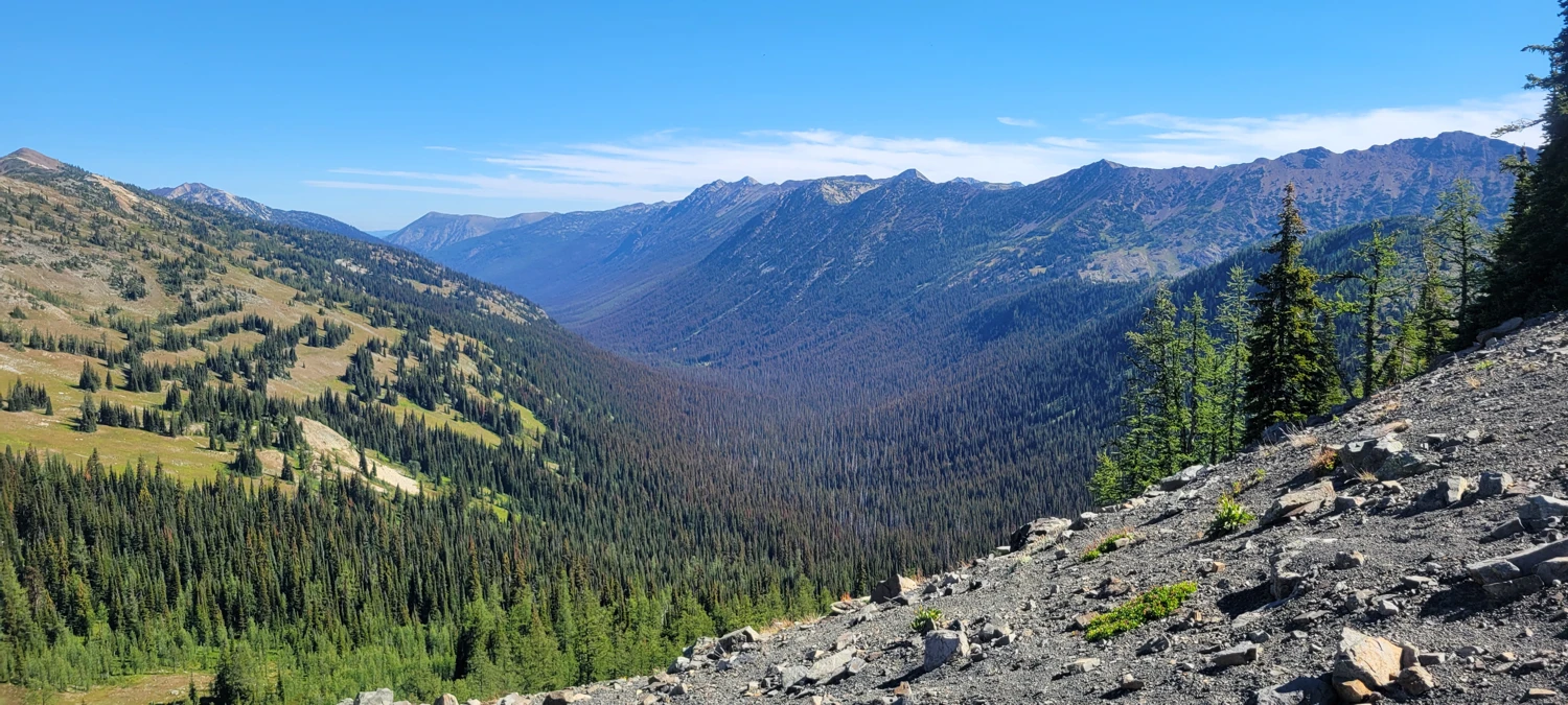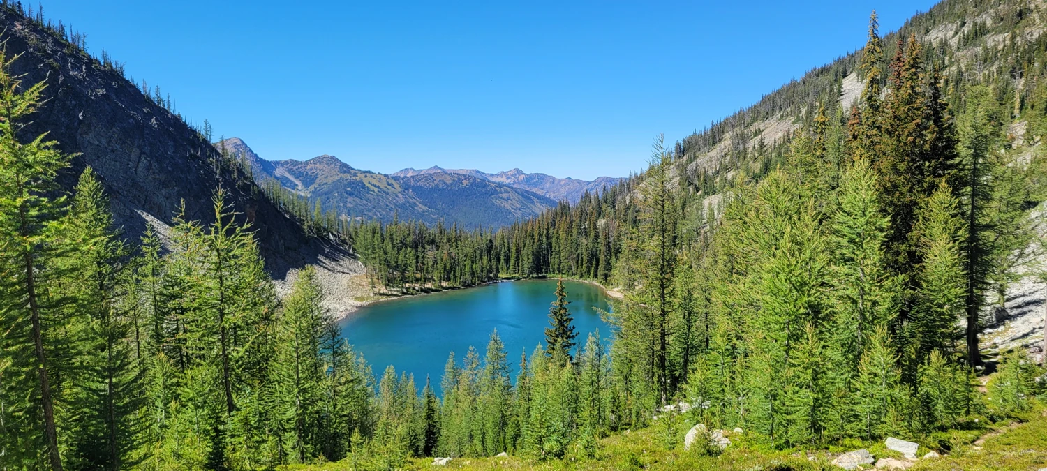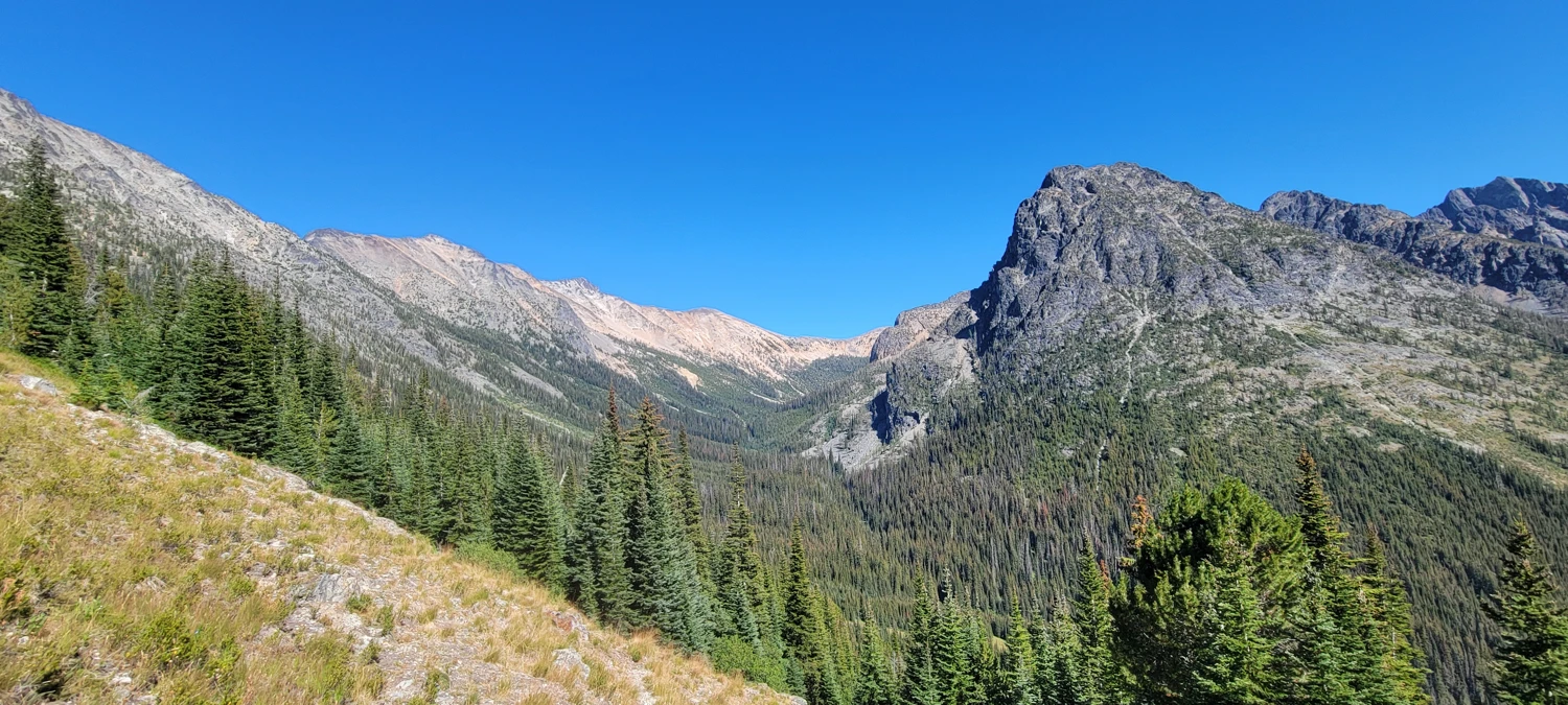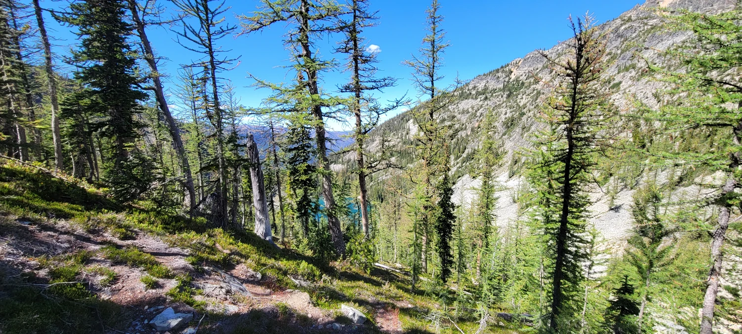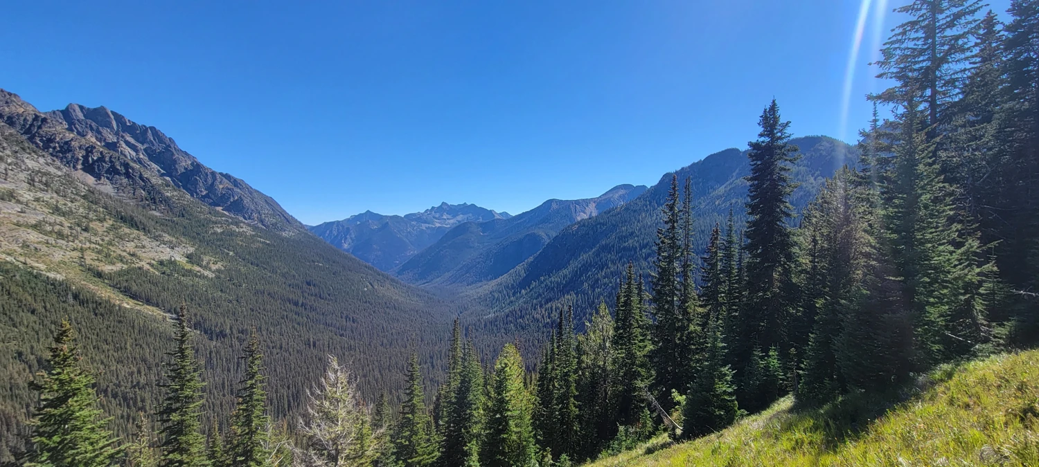 Crossing the pass above Fred’s Lake was far easier this year. With no snow, a well-cut trail led up and over, revealing an incredible view down into the Eureka Creek Valley—definitely one of my favorites in the North Cascades.