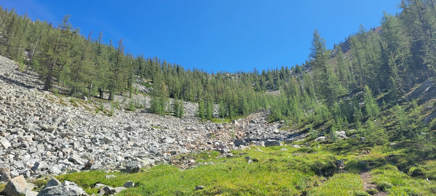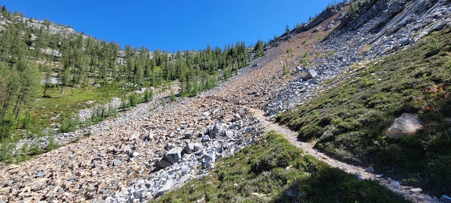 The hike over Slate Pass and out to Fred’s Lake was just as monotonous as on my previous climbs of Carru and Osceola, as well as Lago and Ptarmigan. The Robinson Creek Trail is relatively flat, making for quick progress. Things only started to get interesting once I reached Fred’s Lake.